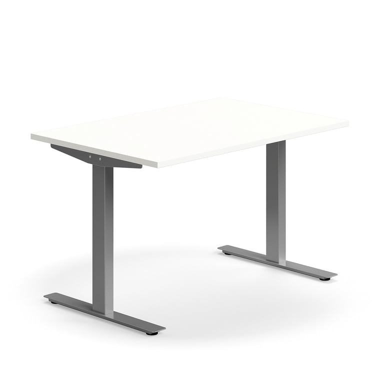 Biurko QBUS, proste, 1200×800 mm, rama T, srebrny, biały