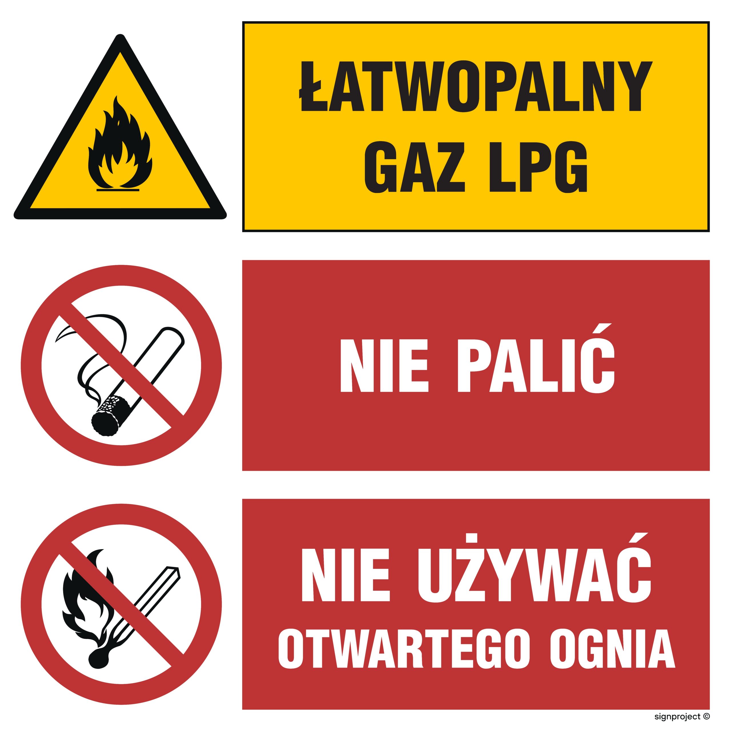 GO002 Łatwopalny gaz LPG Nie palić Nie używać otwartego ognia