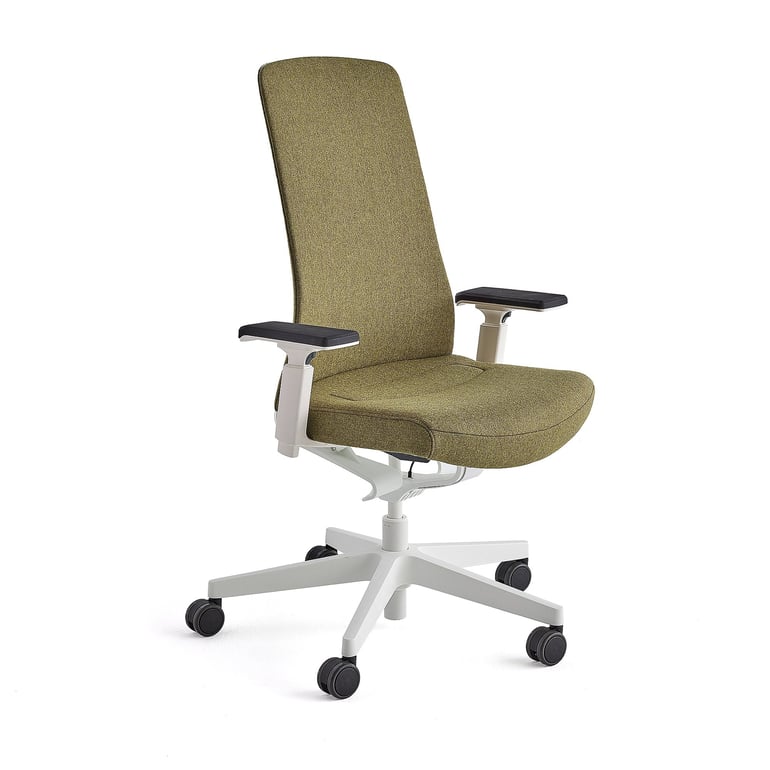 Ekskluzywne krzesło biurowe, idealne na aktywny dzień pracy. Dostosowuje się do ruchów ciała i podąża za nimi bez ograniczania możliwości podparcia i zmniejszenia komfortu. Tapicerowane wysokiej jakości tkaniną wełnianą i wyposażone w podłokietniki z regulacją wysokości, szerokości i głębokości. Krzesło biurowe stworzone do ruchu!