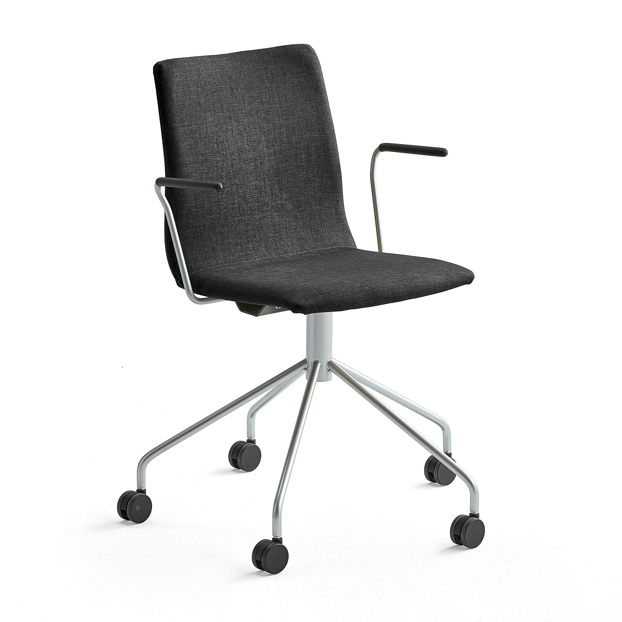 Krzesło konferencyjne OTTAWA, na kółkach, podłokietniki, czarna tkanina, szary