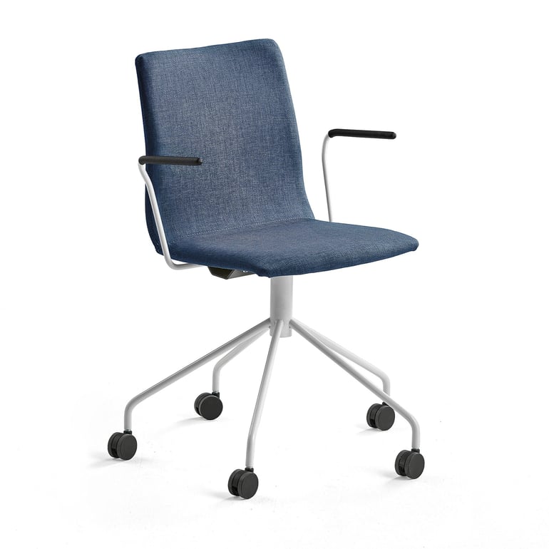 Krzesło konferencyjne OTTAWA, na kółkach, podłokietniki, tkanina, niebieski, biały