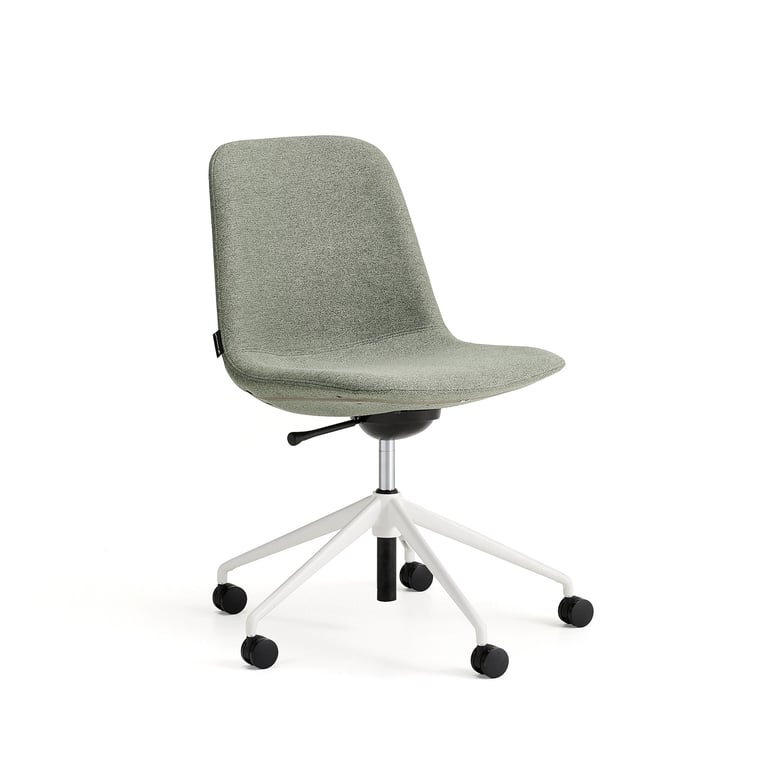 Krzesło LANGLEY, niskie siedzisko, koła, biały/zielonoszary