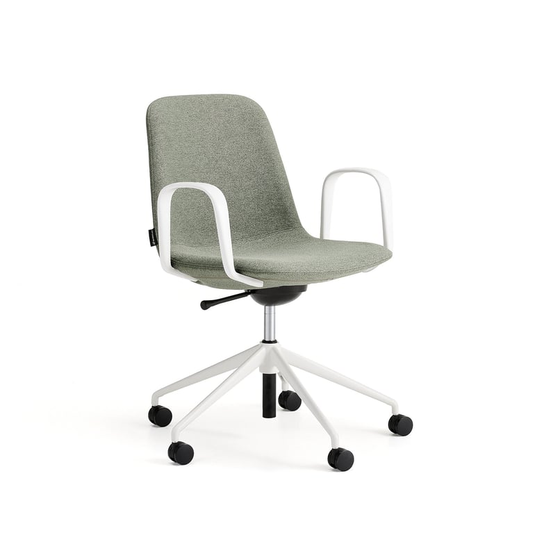 Krzesło LANGLEY, niskie siedzisko, koła, podłokietniki, biały/zielonoszary