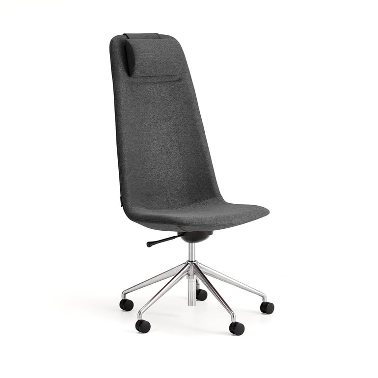 Stylowy fotel konferencyjny na kółkach, pokryty materiałem, z wysokim oparciem i wyściełanym zagłówkiem dla większego komfortu. Dzięki kółkom można łatwo ustawić krzesło przy stole konferencyjnym. Siedzisko z regulacją wysokości. LANGLEY to seria uniwersalnych krzeseł, które sprawdzą się zarówno w tradycyjnych środowiskach konferencyjnych, jak i podczas spotkań w bardziej swobodnej atmosferze. Ten model z wysokim oparciem sprawdzi się na przykład podczas dużych spotkań w salach konferencyjnych lub wideokonferencji w mniejszych pomieszczeniach.