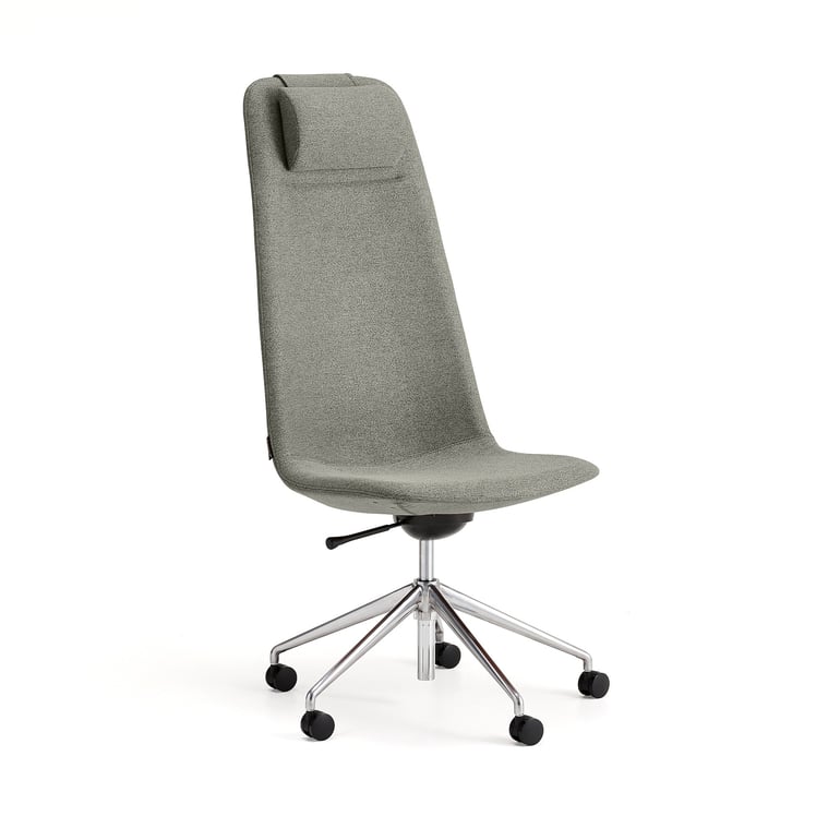 Stylowy fotel konferencyjny na kółkach, pokryty materiałem, z wysokim oparciem i wyściełanym zagłówkiem dla większego komfortu. Dzięki kółkom można łatwo ustawić krzesło przy stole konferencyjnym. Siedzisko z regulacją wysokości. LANGLEY to seria uniwersalnych krzeseł, które sprawdzą się zarówno w tradycyjnych środowiskach konferencyjnych, jak i podczas spotkań w bardziej swobodnej atmosferze. Ten model z wysokim oparciem sprawdzi się na przykład podczas dużych spotkań w salach konferencyjnych lub wideokonferencji w mniejszych pomieszczeniach.