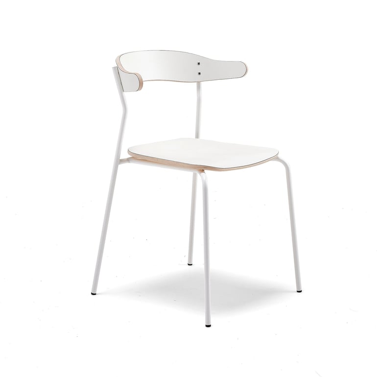 Stylowe krzesło wykonane z profilowanego drewna, idealne do stołówek biurowych i szkolnych jadalni. Podłokietniki w kształcie umożliwiającym zawieszenie krzesła na blacie na czas sprzątania. Krzesło można układać w stosy, jest łatwe do czyszczenia i utrzymania w czystości. To trwałe i stylowe krzesło, które doskonale sprawdzi się w stołówkach pracowniczych i szkolnych jadalniach. Krzesło ma solidną, ale elegancką metalową ramę oraz siedzisko i oparcie wykonane z drewna.
