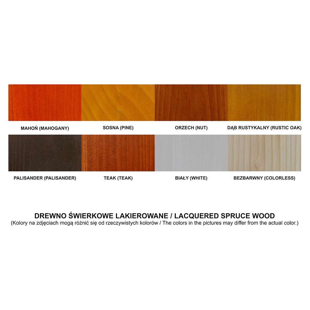 - drewno: świerkowe, jesionowe, iroko