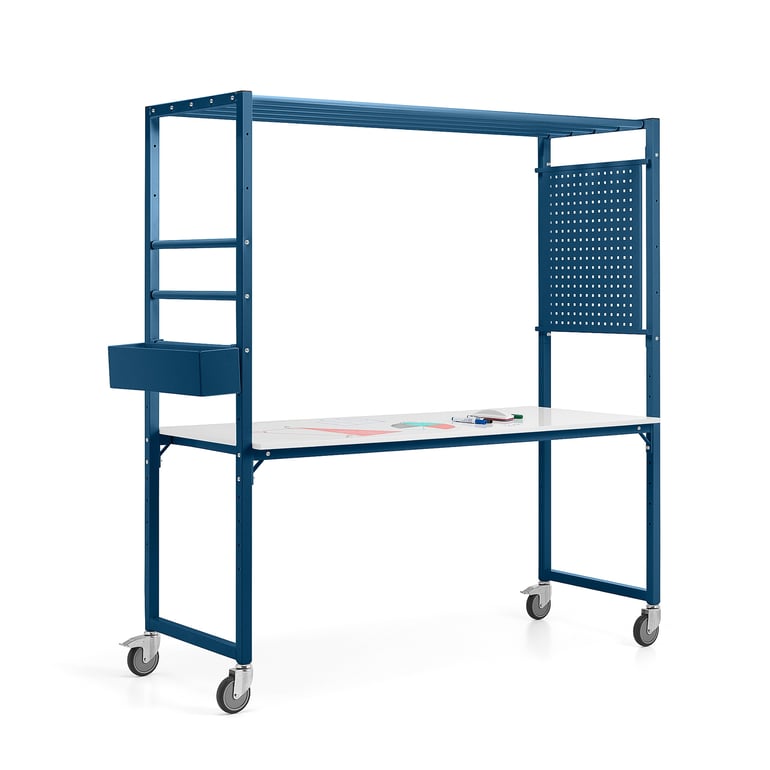 Mobilny multistół TEAMWORK, pojemnik na akcesoria, panel narzędziowy, blat z funkcją pisania, niebie