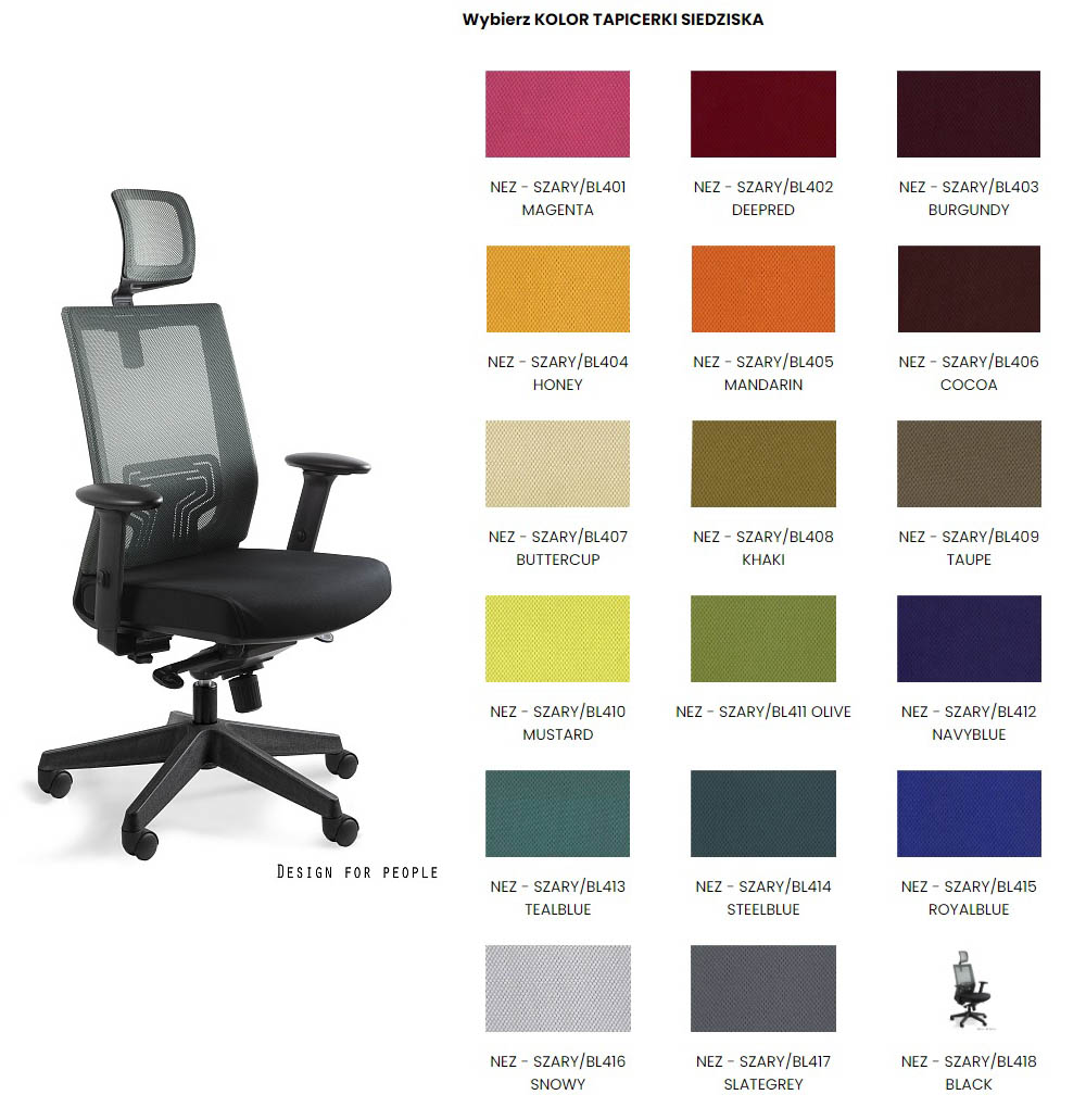 – Oparcie oraz zagłówek tapicerowane siatką