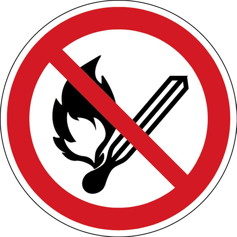 Oznaczenie: zakaz używania otwartego ognia, samoprzylepny poliester, Ø 100 mm