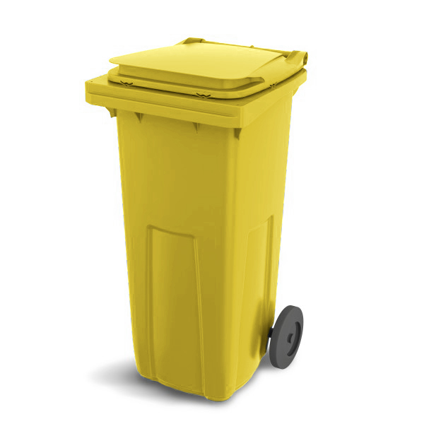 Mobilne plastikowe kontenery na odpady segregowane o pojemności 120 litrów, wyposażone w kółka ułatwiające przemieszczanie. Posiadają różne kolory, co ułatwia segregację odpadów. Wykonane z trwałego polietylenu wysokiej gęstości, odpornego na promieniowanie UV, deszcz oraz roztwory kwaśne i alkaliczne.