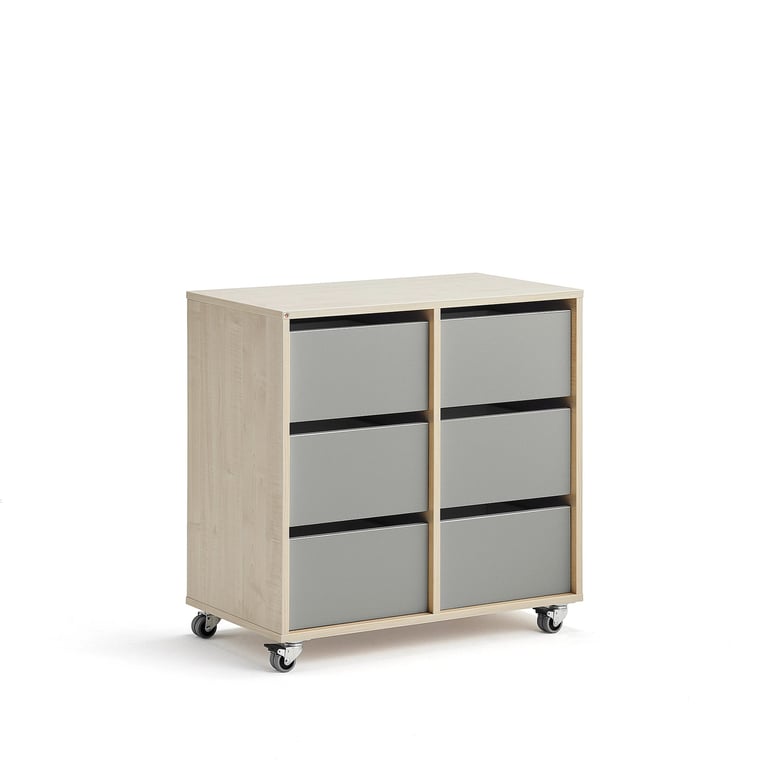 Regał szkolny CASPER, 6 szuflad, brzoza, szary