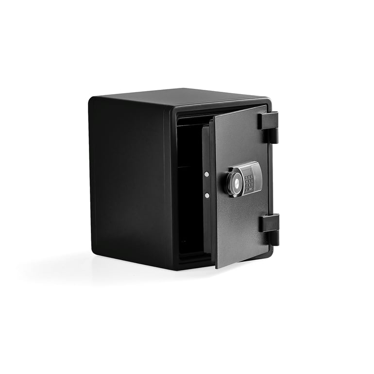 Ognioodporny sejf, który chroni dokumenty przed pożarem do 60 minut. Sejf posiada ruchomą przestawną oraz plastikową szufladę. Wyposażony w elektroniczny zamek szyfrowy. Ognioodporny sejf, który chroni papierową zawartość przed pożarem do 60 minut. Idealnie nadaje się do przechowywania ważnych dokumentów, takich jak umowy i firmowa korespondencja.