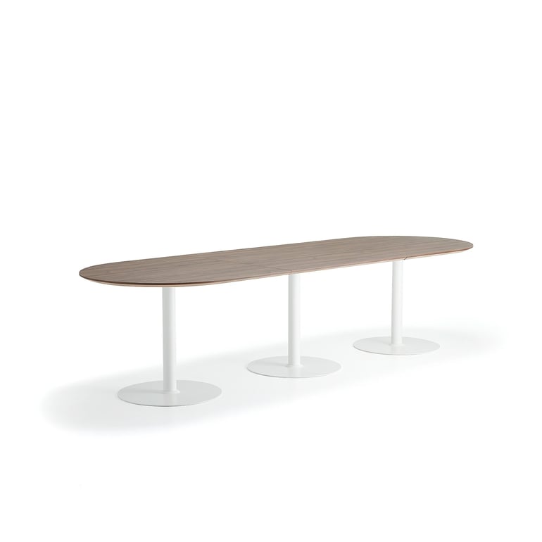 Stół METRIC, owalny, 3000x1000x720 mm, biały/orzech