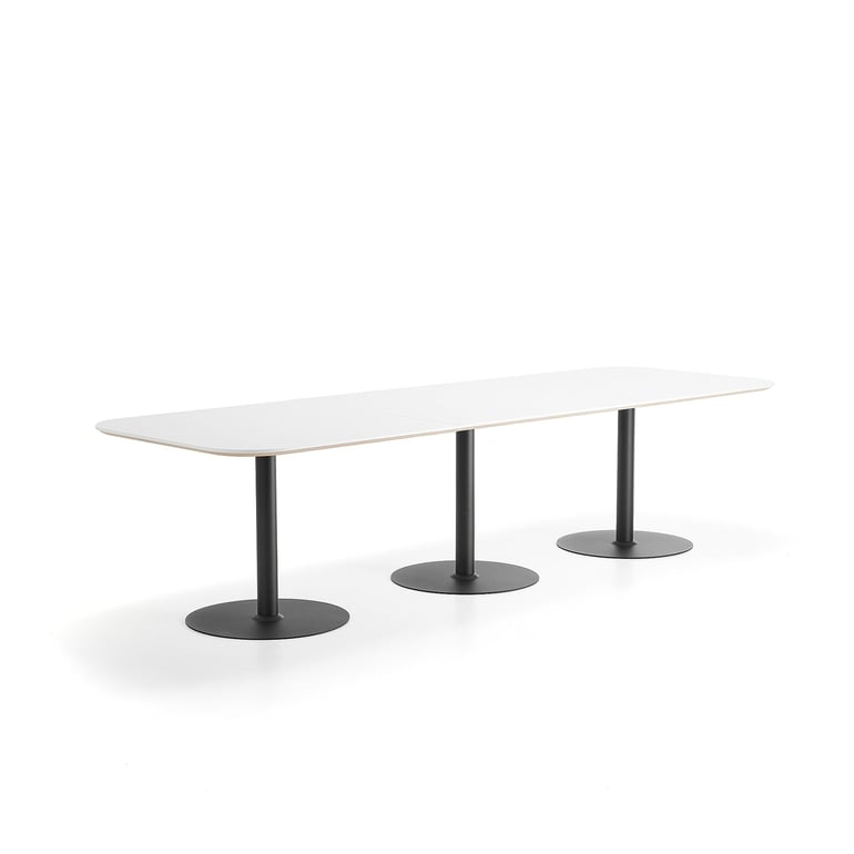 Stół METRIC, zaokrąglone narożniki, 3000x1000x720 mm, czarny/biały