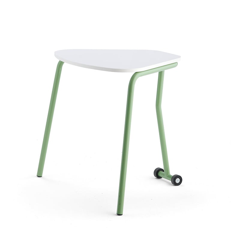 Niezwykle praktyczny stół do środowisk szkolnych, który nie zajmuje wiele miejsca. Można użytkować jeden stół lub połączyć kilka i stworzyć praktyczną aranżację pomieszczenia. Przednie nogi wyposażono w koła, które ułatwiają przemieszczanie mebla. Wybierz unikalny stół, który przeniesie Cię na wyższy poziom aranżacji szkolnych wnętrz.