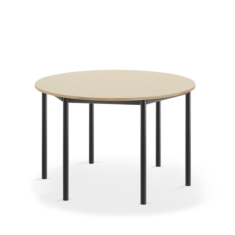 Stół SONITUS, okrągły, Ø1200×720 mm, laminat HPL brzoza, antracyt