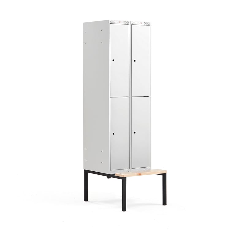 Szafa schowkowa CLASSIC, 2 schowki w pionie, z ławeczką, 2 moduły, 2120x600x550 mm, szary