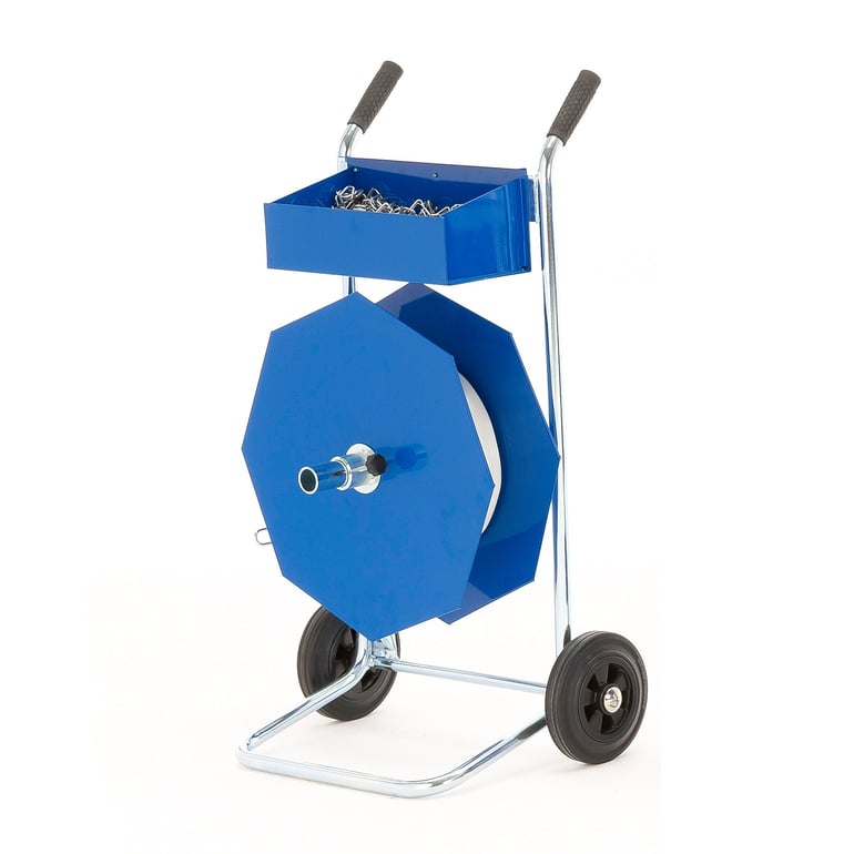 Uniwersalna odwijarka do taśm PP oraz WG o szerokości 130-200 mm. Wyposażona w dwa koła, uchwyty do prowadzenia, pojemnik oraz regulowany uchwyt na rolkę. Mobilny i elastyczny stojak do efektywnego spinania. Odpowiedni do taśm PP oraz WG. Dzięki regulacji uchwytu stojak można dostosować do różnych taśm. Można stosować rolki o szerokości pomiędzy 130-200 mm i średnicy rdzenia: 76, 150, 200 i 280 mm. Stojak ma wytrzymałą stalową ramę, malowaną proszkowo. Rączki pokryte gumą oraz dwa koła ułatwiają manewrowanie pomiędzy różnymi stacjami roboczymi lub gdy trzeba go odstawić. Taca narzędziowa pomiędzy rączkami idealna do przechowywania napinarek i innych urządzeń potrzebnych podczas bandowania.