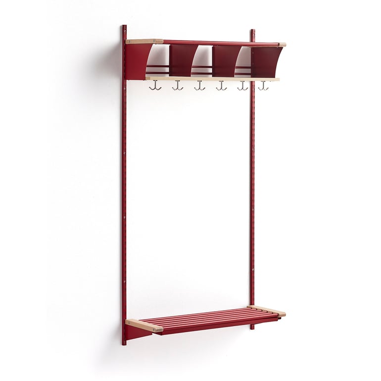 Wieszak ubraniowy JEPPE, 3 przegrody, moduł podstawowy, 1790x900x310 mm, czerwony/brzoza