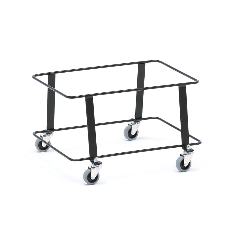 Wózek na koszyki z czterema kołami skrętnymi do łatwiejszego transportowania plastikowych koszyków sklepowych. Wytrzymały i praktyczny wózek na koszyki, ułatwiający zbieranie i przenoszenie wielu koszyków w tym samym czasie, np. od wejścia do wyjścia sklepu, unikając podnoszenia ciężaru i nadwyrężania kręgosłupa. Wózek wykonany z czarnej, lakierowanej stali, wyposażony w kółka samonastawne.