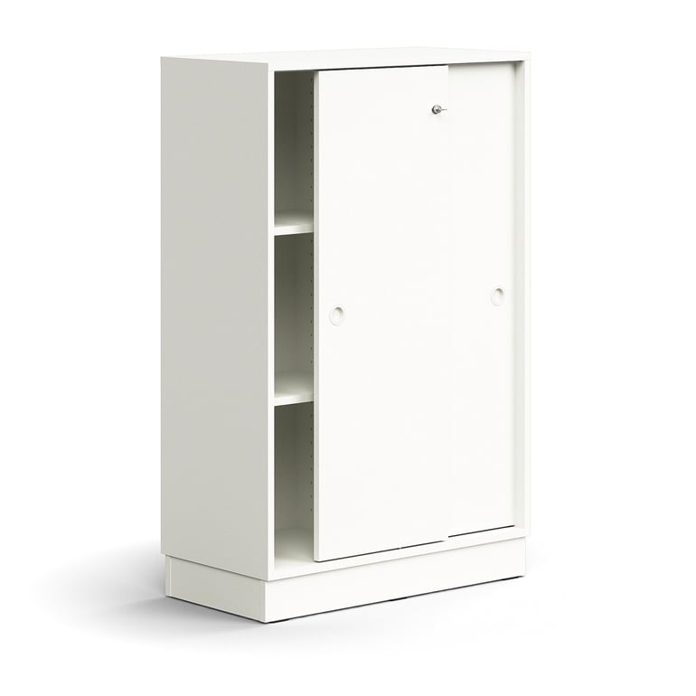 Zamykana szafa przesuwna QBUS, 2 półki, cokół, uchwyty, 1252x800x400 mm, biały