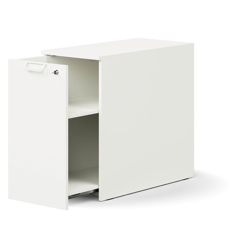 Nasza praktyczna szafka boczna to kompaktowy, zamykany mebel, który można wykorzystać do przechowywania i podziału pomieszczenia na strefy. Szafka idealnie pasuje do biurka stacjonarnego, zwiększając przestrzeń roboczą i poprawiając możliwości współpracy. Wysuwana komora zapewnia dużo miejsca do przechowywania, na przykład materiałów biurowych i rzeczy osobistych, do których wymagany jest łatwy dostęp.